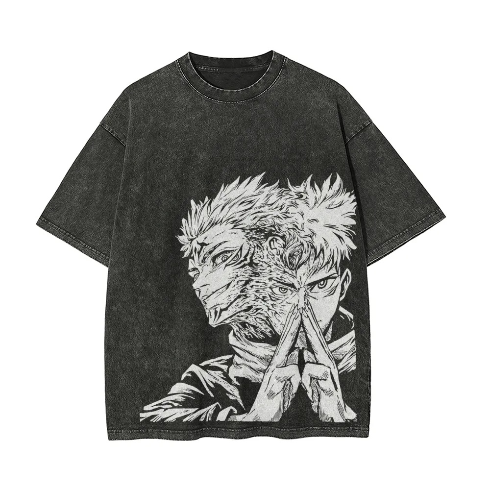 Anime Sukuna Jujutsu Kaisen Oversize Washed T-Shirt- Unisex