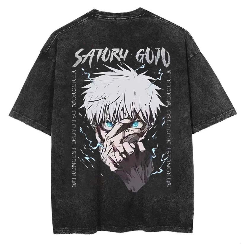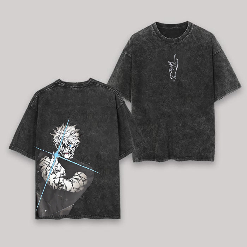 Retro Gojo Satoru Anime Printed Men's Washed T-Shirt
