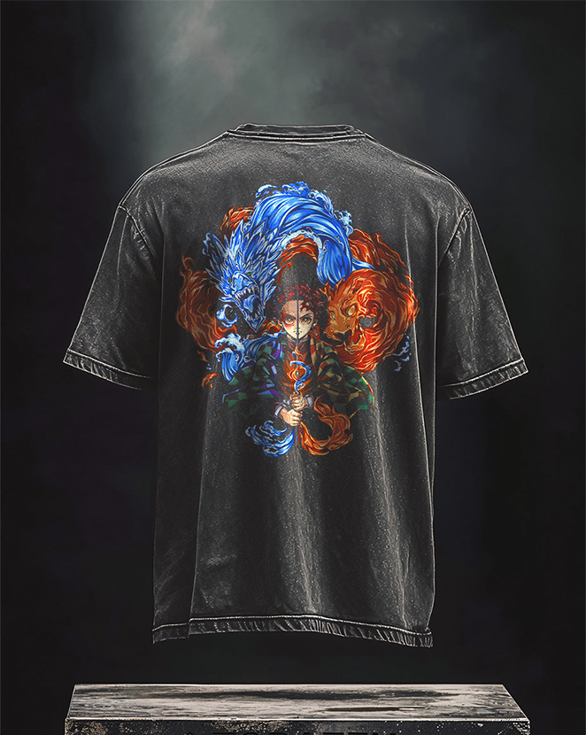 Vintage Breath of Tanjiro Printed Men's Washed T-Shirt