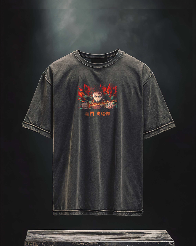 Demon Slayer Tanjiro Kamado Printed Unisex Washed T-Shirt