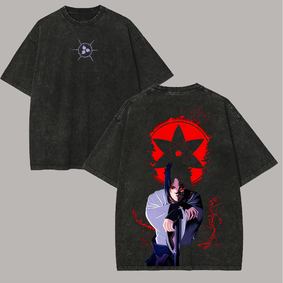 Shisui Uchiha Naruto Printed Oversize Washed T-Shirt