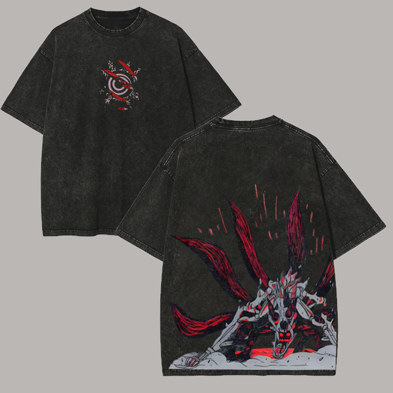 Naruto Baryon Mode Anime Printed Oversize Washed T-Shirt