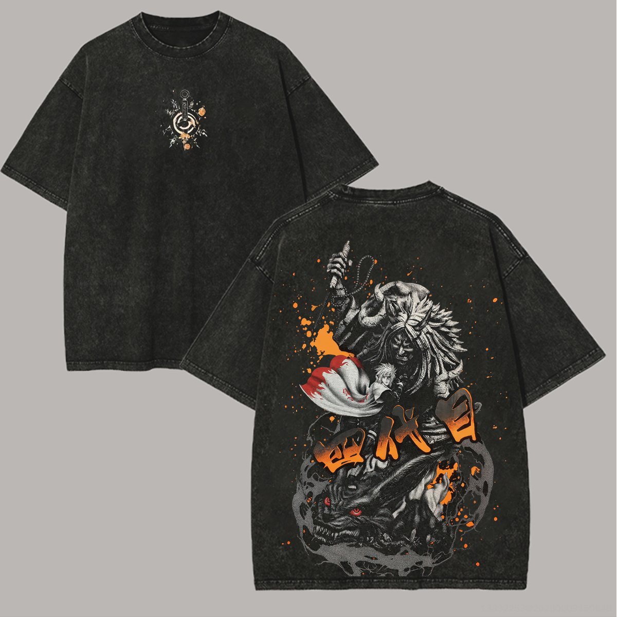 Retro Uchiha Madara X Naruto Anime Oversize Washed T-Shirt- Unisex