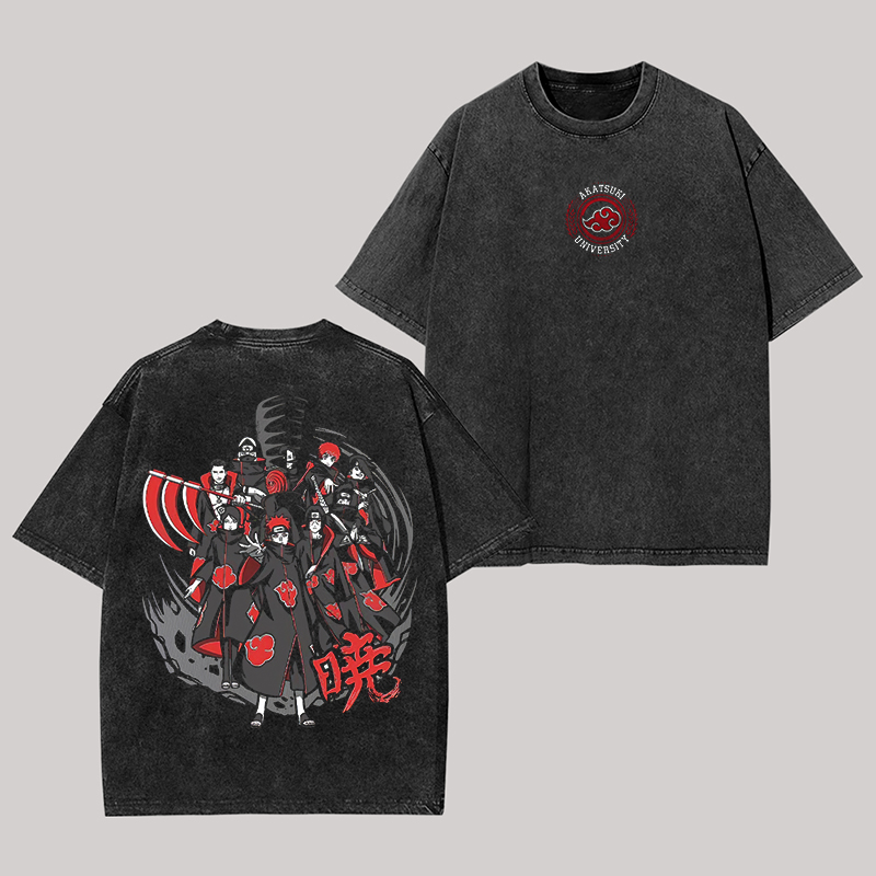 Akatsuki University Naruto Printed Unisex Washed T-Shirt