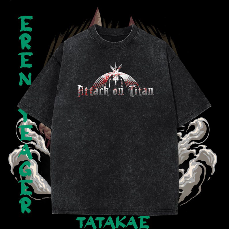 Attack On Titan Printed Oversize Washed T-Shirt- Unisex