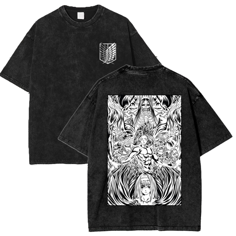 Attack On Titan Printed Oversize Washed T-Shirt- Unisex