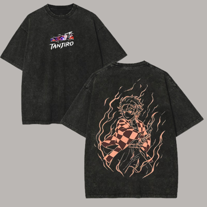 Demon Slayer Tanjiro Kamado Printed Unisex Washed T-Shirt