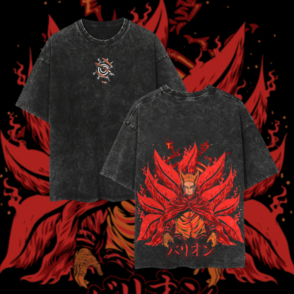 Naruto Baryon Mode Anime Printed Oversize Washed T-Shirt