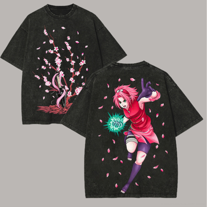 Naruto Haruno Sakura Printed Unisex Washed T-Shirt