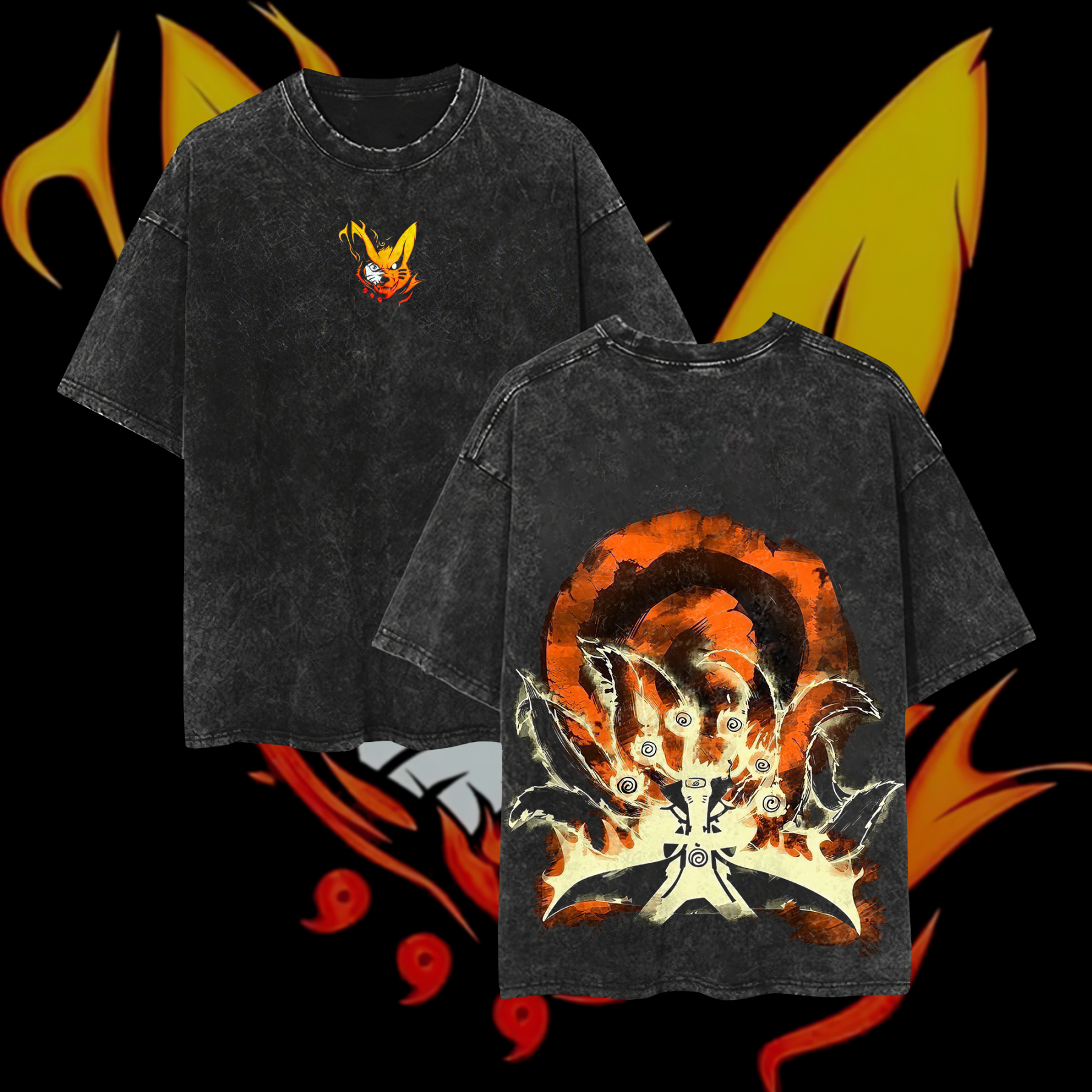 Naruto Nine-Tailed Fox Anime Printed Oversize Washed T-Shirt