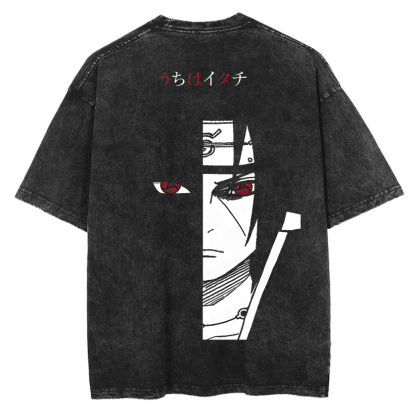 Naruto Sasuke Sharingan Eye Printed Washed T-Shirt- Unisex