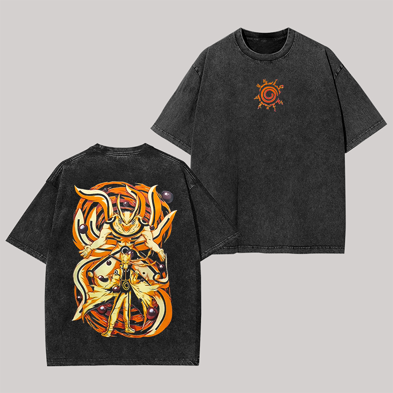Nine Tails Naruto Printed Unisex Washed T-Shirt