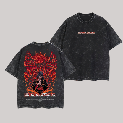Uchiha Itachi Naruto Printed Oversize Washed T-Shirt